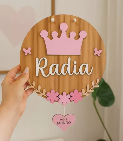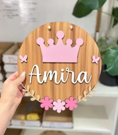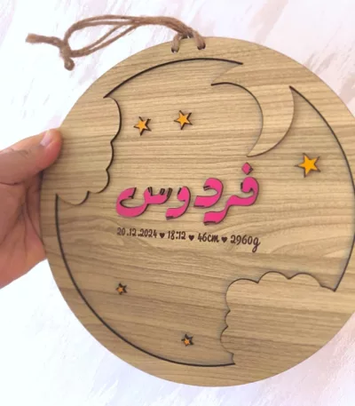 signe en bois de prénom en couleur pour décoration baptême et décoration murale